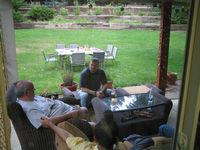 Lecturing while waiting for lunch                     Discussion outside                   Desperate student on the right